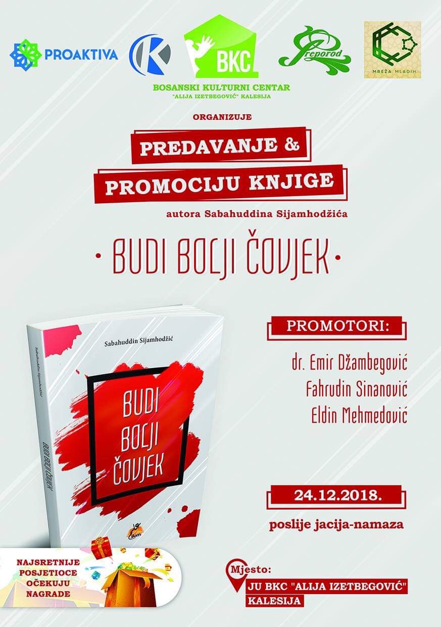 U ponedjeljak, 24. decembra, poslije jacije, u Kalesiji, u sali BKC-a, održat će se promocija knjige „Budi bolji čovjek“.