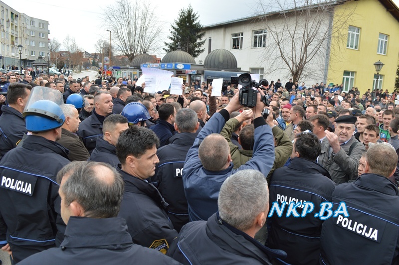 12.15h – Policija je stigla ispred zgrade Općine prije 12h. Nekoliko desetina građana za sada u centru Kalesije.
