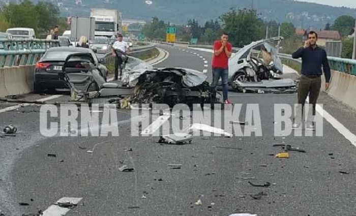 Fotografije koje su napravili građani pokazuju da je jedan od automobila koji je učestvovao u nesreći prepolovljen od siline udara, te da se tijelo nastradale osobe još uvijek nalazi na cesti.