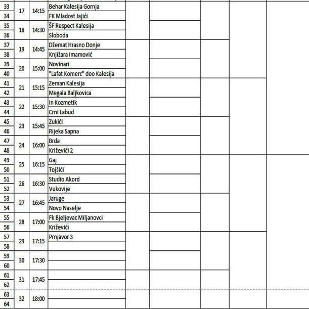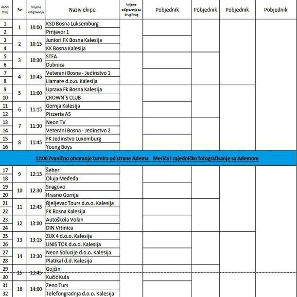 Pogledajte spisak ekipa koje su se prijavile, kao i raspored utakmica