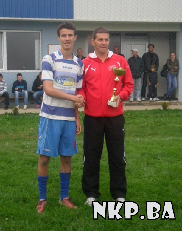Pobjednički pehar kapitenu Edinu Osmanoviću uručio je Suad Tabalović, potpredsjendik NS općine Kalesija.
