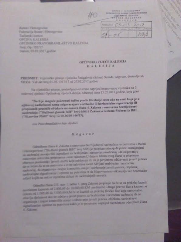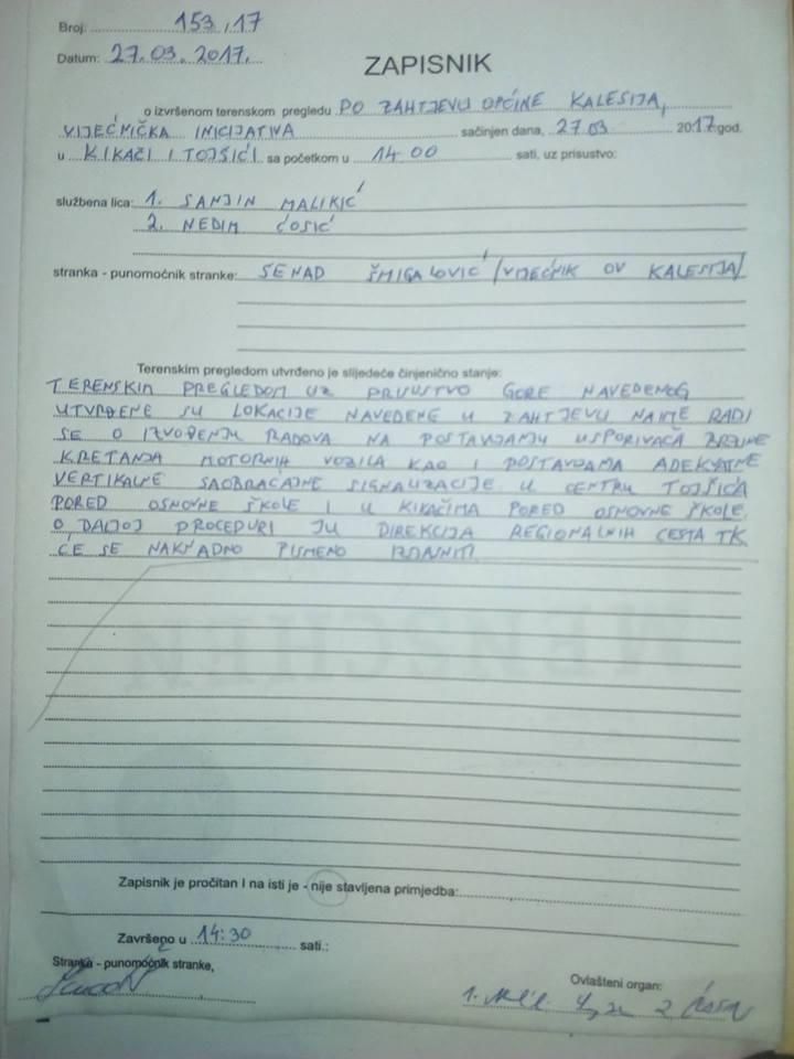 Nakon što je danas objavljen a informacija da su postavljeni usporivači brzine, i pješački prelazi, u Tojšićima i Kikačima u blizini škola, uz informaciju da velike zasluge za isto pripadaju načelniku Seadu Džafiću, na adresu našeg portala je stigla reakcija OO BPS Kalesija.