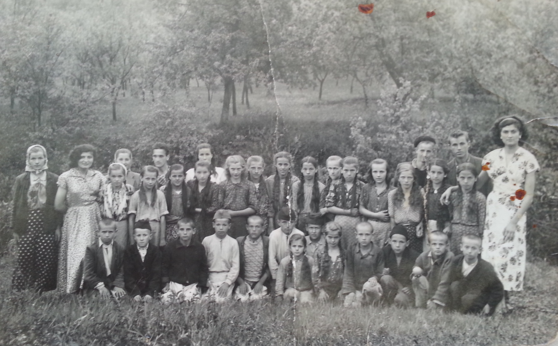 Foto: čuče sa desna na lijevo: Mujkanović Nijaz, Smajić Hamza, Nišić Ferid, Karahodžić Džemal, Mujkanović Džehva, Mujkanović Emina, Rizvanović Ibrahim, Smajić Huso, Smajić Safet, Mujkanović Mehmed, Mujić Avdo, Nišić Suljo, Mujkanović Fikret. Stoje sa desna na lijevo: Zukić Džehva, Terzić Nesiba, Selimović Aiša, Karahodžić Nejra, Čorić Sadika, Rizvanović Hatidža, Zukić Ajka, Smajić Aiša, Hajdarević Ifeta, Rizvanović Fata, Mujkanović Aiša, Smajić Emina, Smajić Belkisa, Hadžić Hafiza. Na fotografiji se nalazi učiteljica Gordana Tošić i njena sestra Radmila.