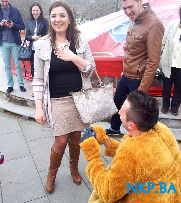 Kalesijac Adis Hadžić, koji trenutno živi i radi u Italiji, je zaprosio Almu Đedović iz kalesijskog naselja Kikači u kostimu Mede, iz trenutno najpopularnijeg dječijeg crtića “Maša i Medo”.