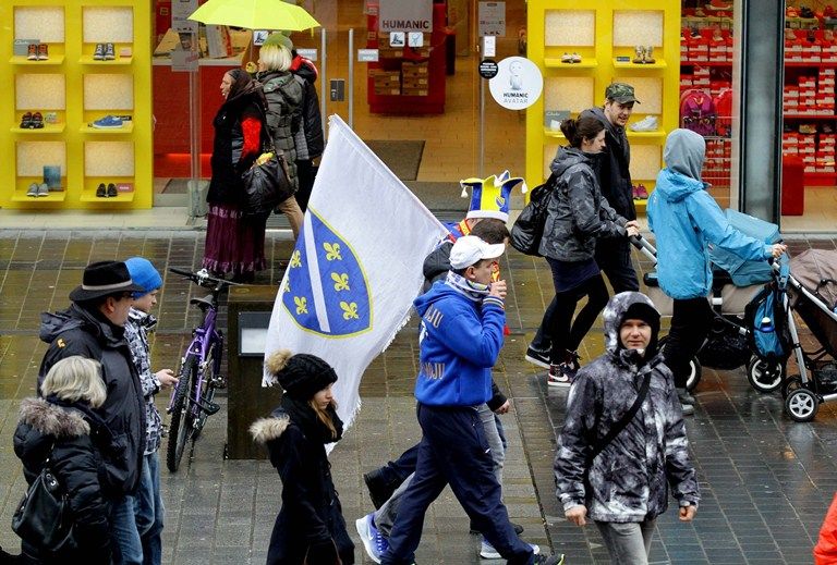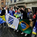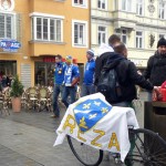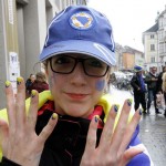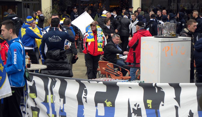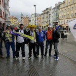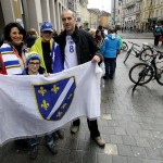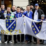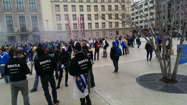Domaći Austrijanci su se okupili oko glavnog gradskog trga gdje su se okupili navijači BiH i čudu gledaju pjesmu na hiljada Bosanaca.
