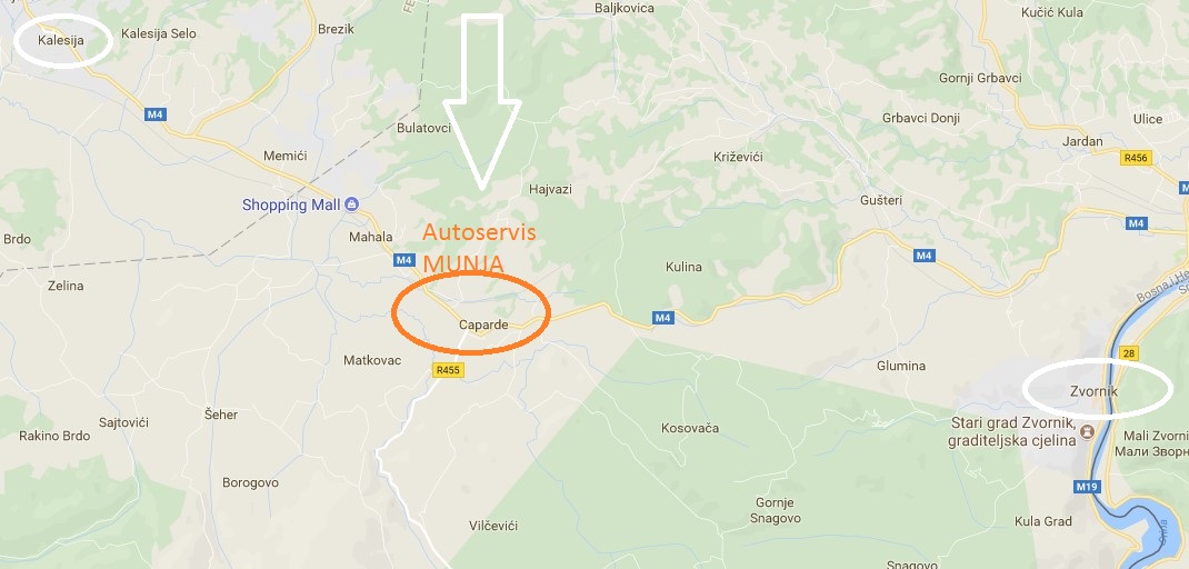 Servis se nalazi uz magistrani put M4, 9 km od Kalesije i 14 km od Zvornika.