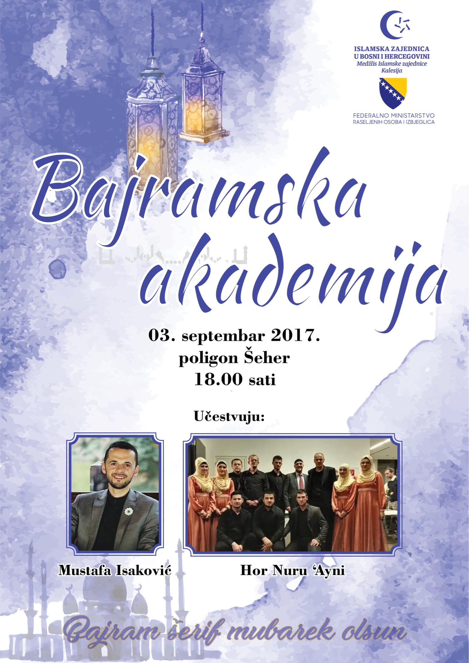 Organizatori pozivaju sve zainteresovane da treći dan Bajrama dođu u džemat Šeher, i uživaju u programu bajramske akademije kojeg su za njih pripremili organizatori te izvođači programa.