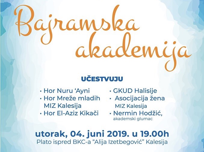Mjesec posta bliži se svome kraju. Prema Takvimu IZ u BiH Ramazanski bajram nastupa u utorak, 4. juna 2019. godine. Povodom Ramazanskog bajrama Medžlis IZ Kalesija organizovat će prvog dana Bajrama svečanu akademiju. Akademija će se održati na platou ispred BKC-a “Alija Izetbegović” u Kalesiji sa početkom u 19.00 sati.