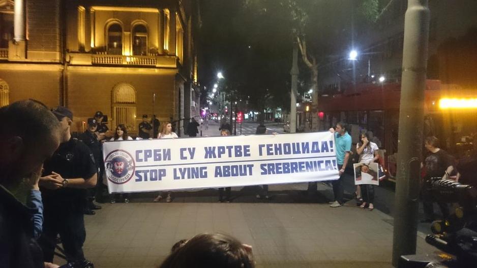 Kako javlja Blic, policijski kordon razdvajao je suparničke grupe. Šešeljeve pristalice koji su nosile zastave Srbije sa Šešeljevim likom i zastave sa obilježjima četničkog pokreta i skandirale uvrede na račun premijera Srbije Aleksandra Vučića policija je odvojila u prostor iznad Skupštine grada, dok su ispod Skupštine ostali građani koji pale svijeće.