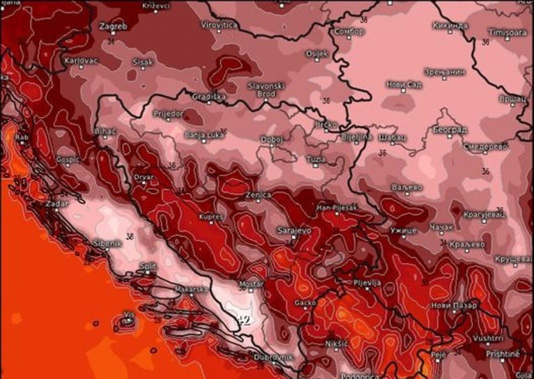 “Vrhunac nadolazećih vrućina očekuje nas u četvrtak i petak sa temperaturama između 34 i 39°C, na jugu i sjeveru zemlje mjestimično do 41°C”, javlja BHMeteo.