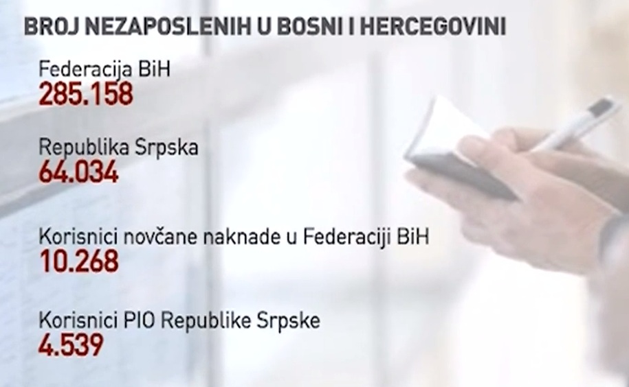Apsurd bh. današnjice je da Bosna i Hercegovina prednjači po stopi nezaposlenosti u Evropi, a da poslodavci stalno traže povećanje kvote za dozvole za uvoz radne snage iz inostranstva. U Federaciji BiH je na evidenciji 285.000 nezaposlenih, u Republici Srpskoj 64.000.