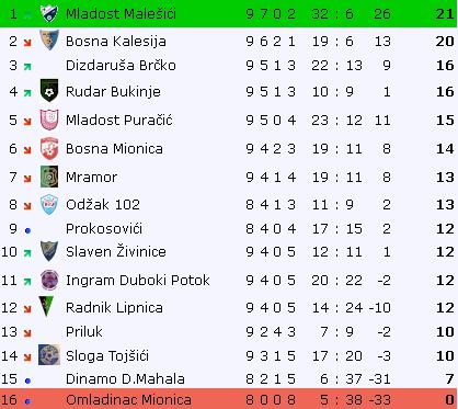 Bosna je osam kola bila lider na tabeli, dok je nakon ovoga kola na vrhu tabele zasjela ekipa Mladosti iz Malešića.