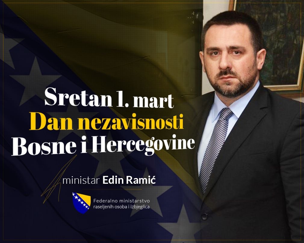 Povodom 1. marta Dana nezavisnosti Bosne i Hercegovine, čestitku je uputio federalni ministar raseljenih osoba i izbjeglica Edin Ramić.