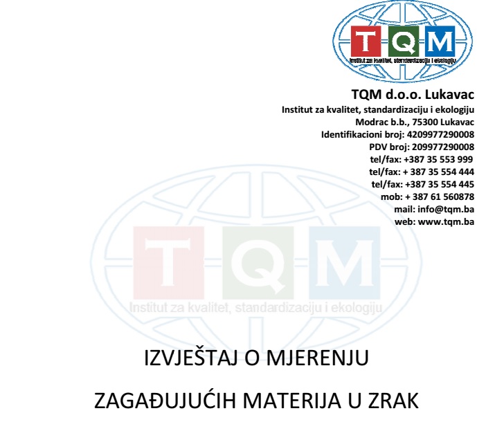 Izvještaj o mjerenju zagađajućih materija u zrak Instituta za kvalitet, standardizaciju, i ekologiju TQM d.o.o. Lukavac br. Izvještaja 06-27/16 (stranica 20)
