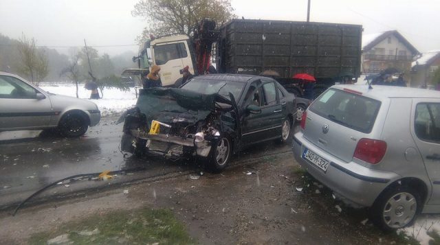 On se nalazio za volanom automobila marke Mercedes, austrijskih registarskih oznaka, koji se direktno sudario sa kamionom.
