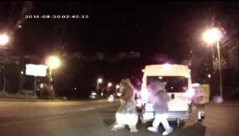 Nakon što su se sudarili, vozač automobila je izašao iz vozila s namjerom da napadne vozača kombija.