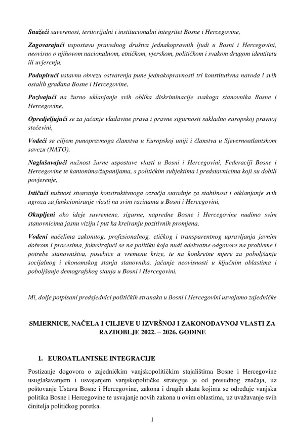 Kako stoji u sporazumu, smjernice, načela i ciljevi u izvršnoj i zakonodavnoj vlasti u periodu od 2022. do 2026. godine su raspodijeljeni u tri osnovna dijela.