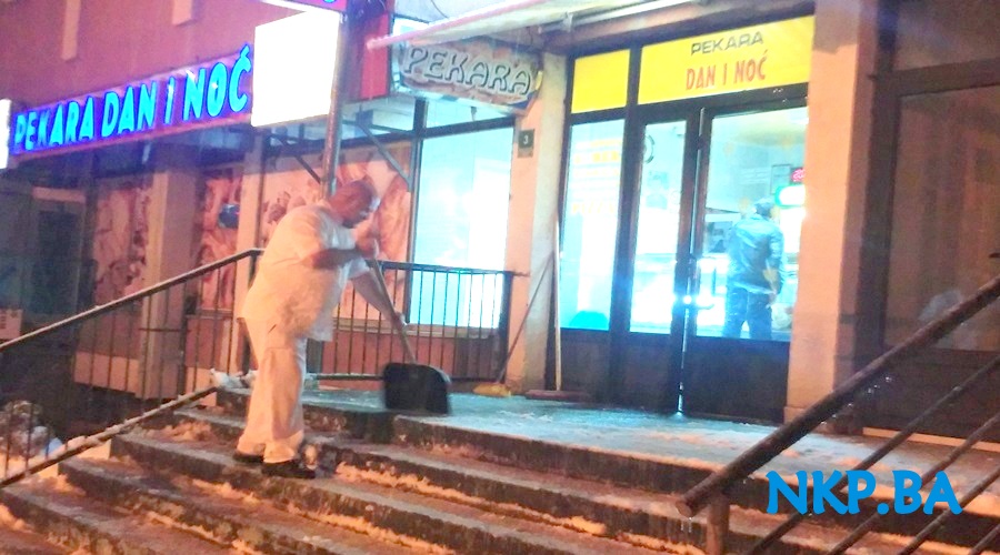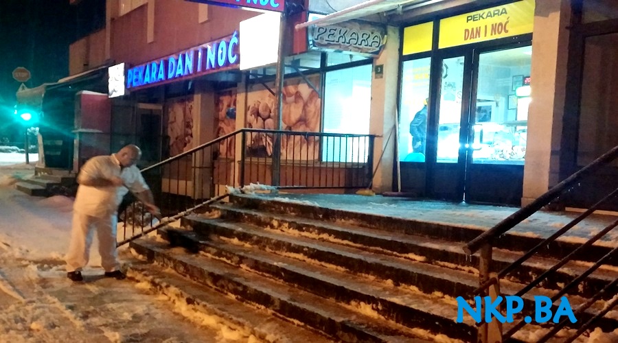 Vlasnik pekare “DAN I NOĆ”, koja se nalazi u centru Kalesije, već treći dan sa svojim radnicima “dočekuje” svaku pahulju ispred svoje radnje.