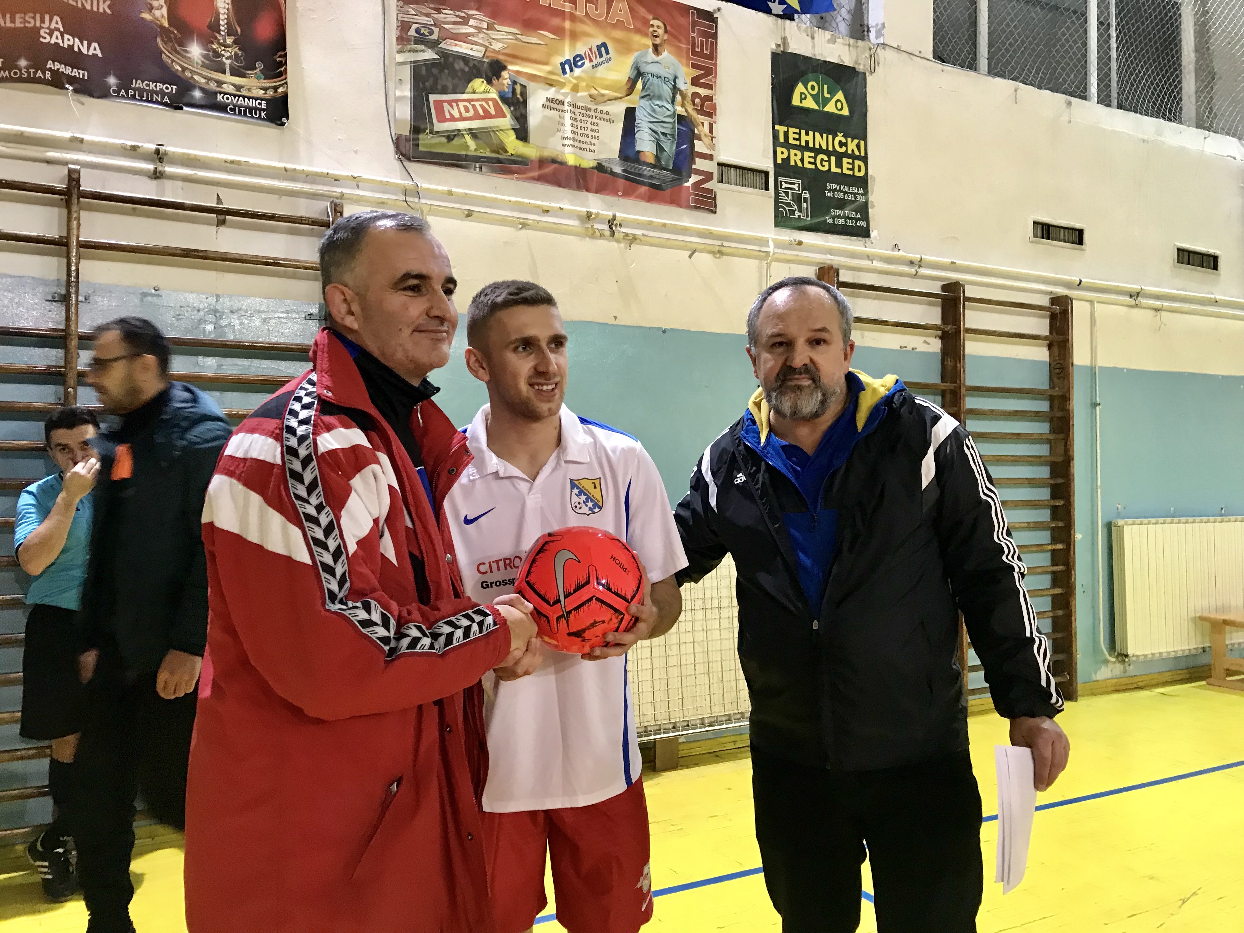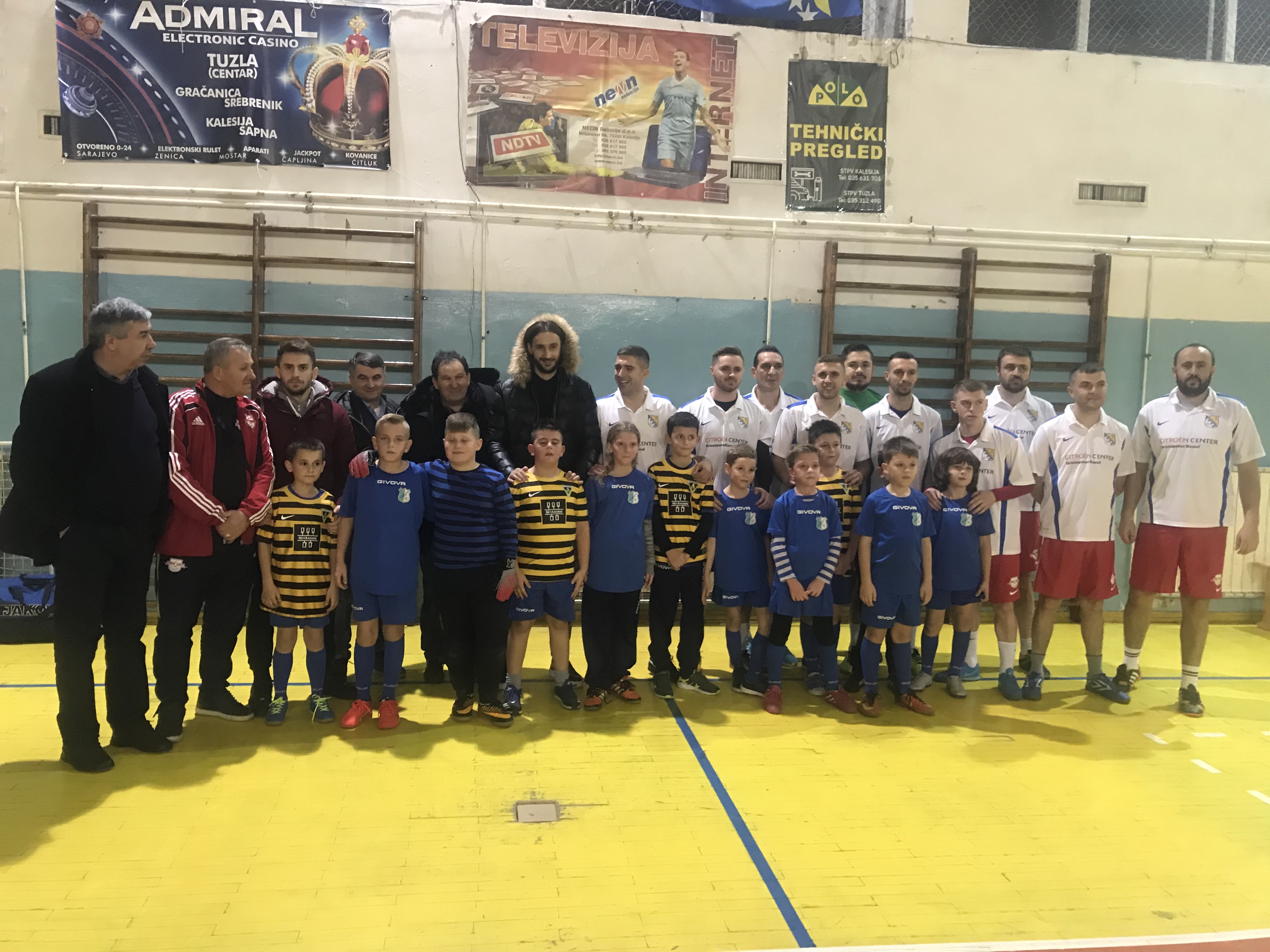 Reprezentativac BiH Eldar Ćivić publici je poklonio nekoliko lopti sa potpisom, a po jendu lptu poklonio je i OŠ „Kalesija“ i MSŠ Kalesija.