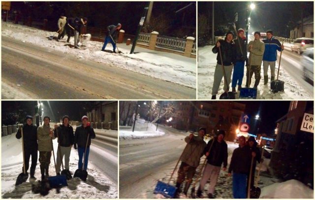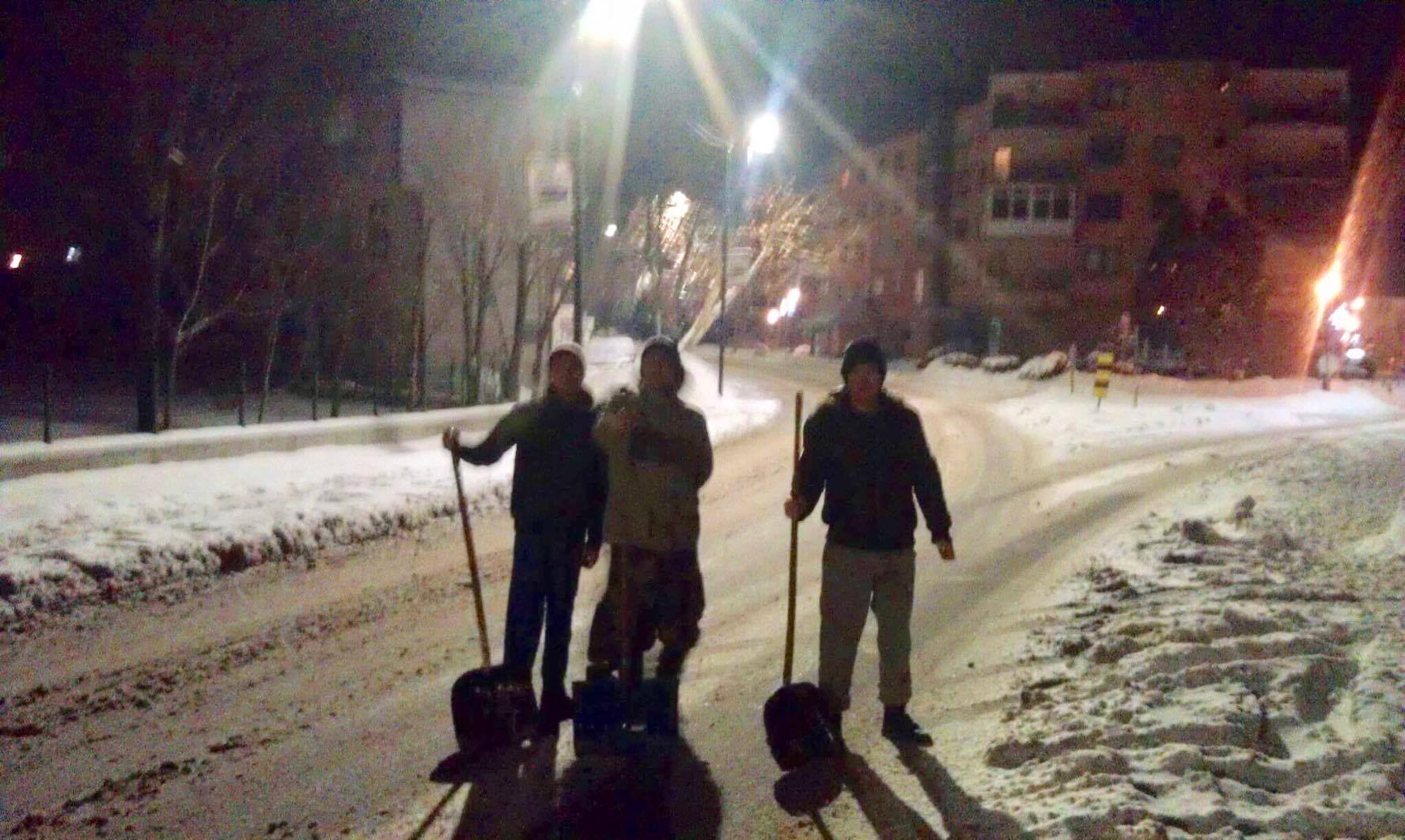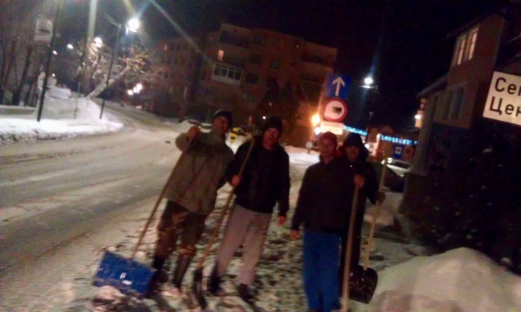 Edis Bektić, Safet Mujkić, Edin Bektić, Senad Mujkić i Rasim Omerbegović su večeras uzeli lopate u ruke i očistili trotoar u dužini oko 800 od metara uz magistralni put Tuzla – Zvornik.