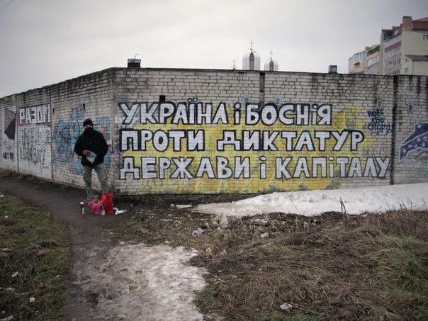 Grupa aktivista Autonomnog otpora je u Lavovu, u znak podrške borbe ukrajinskog i bosanskohercegovačkog naroda protiv države i kapitala, uradila grafit koji je vidljiv iz prozora vagona koji dolaze u ukrajinski grad.