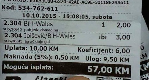 On je nekoliko sati prije utakmice na svom Facebook profilu objavio fotografiju sa uplaćenim listićem u kladionici, uz natpis “Igraj Bosno igraj I pobijedi !!!”