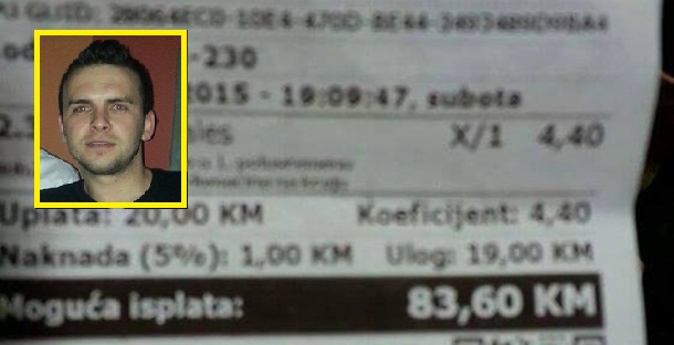 Koeficijent na “X/1” je bio 4,40 KM, a Smajić je uplatio 20 KM.