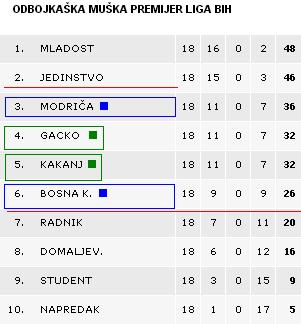 OK BOSNA OK MODRICAOK Bosna Kalesija je regularni dio sezone završila sa devet pobjeda i isto toliko poraza, što je bilo dovoljno za šestu poziciju koja garantuje nastup u Premijer ligi BiH i naredne sezone.