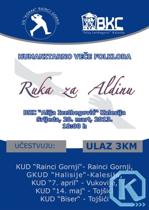U kalesijskom BKC-u “Alija Izetbegović” u organizaciji UG “Korak” održano je humanitarno veče folklora “Ruka za Aldinu”.