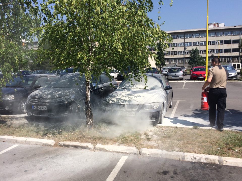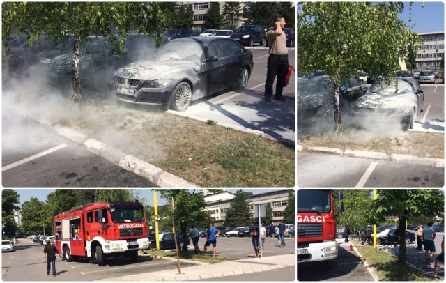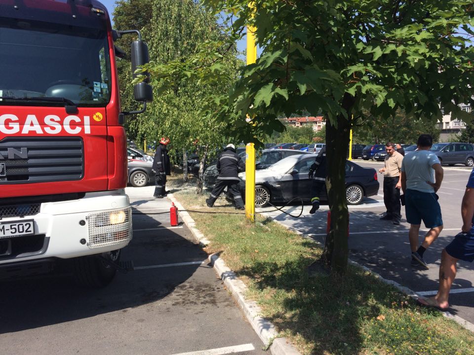 Na parkingu tržnog centra omega u Tuzli danas se u jutarnjim satima zapalio automobil marke BMW.