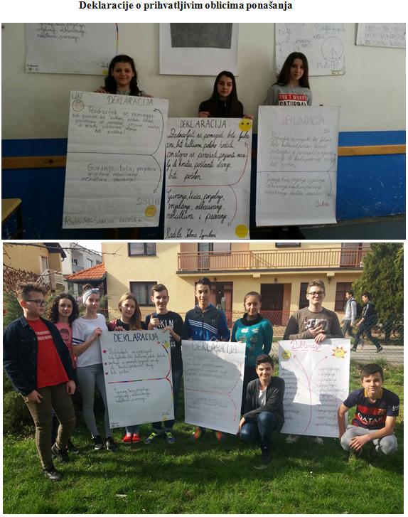 Vršnjački edukatori bili su učenici Ismail Buljubašić- VIII-1, Vahdet Kuralić- VIII-3 i Enis Avdibašić VIII-1. Oni su u proteklih gotovo godinu dana, u pratnji nastavnice bosanskoga jezika i književnosti Jakute Grcić, prošli program obuke za vršnjačke edukatore te u Osnovnoj školi „Tojšići“ realizirali tematska predavanja i radionice na časovima odjeljenske zajednice kojom prilikom je svako odjeljenje uspostavilo svoja interna pravila i napisalo svoju deklaraciju o prihvatljivim oblicima ponašanja.