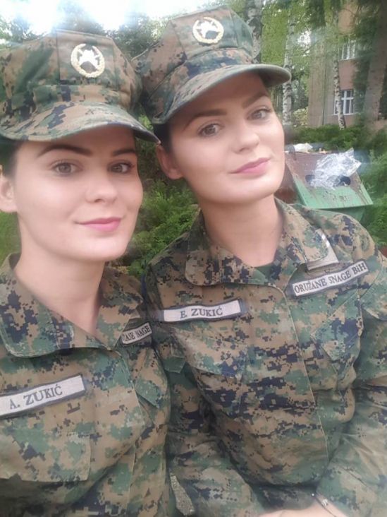Amina i Edina Zukić, sestre bliznakinje iz Sarajeva, kažu da ih je vojska oduvijek fascinirala. Odmah nakon završetka srednje škole prijavile su se u vojnu službu kao vojnici i imaju već više od šest godina vojnog staža.