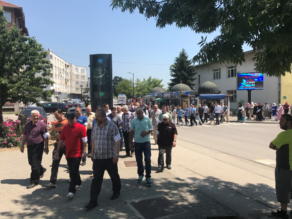 Nakon podne namaza, ispred Čaršijske džamije su podijeljenje bijele trake, nakon čega su se građani okupili na platou ispred BKC-a, odakle je krenula šetnja centrom Kalesije, nakon čega je na šehidskom spomen-obilježju ispred zgrade Općine položeno cvijeće i pročuena Fatiha u čast svih nevino ubijenih.