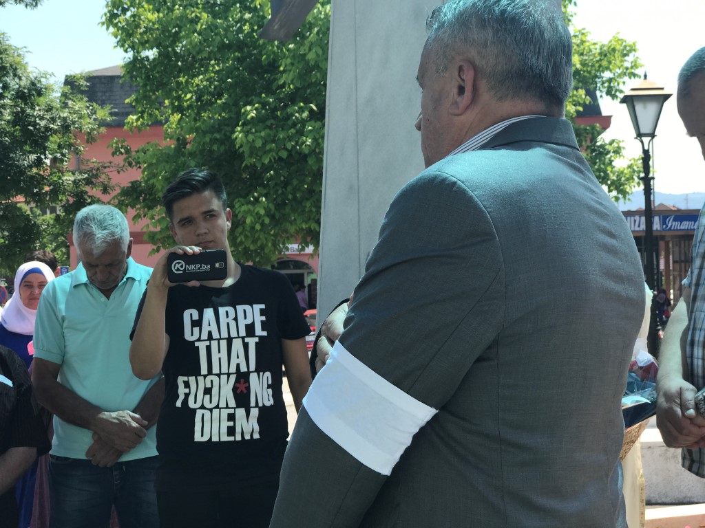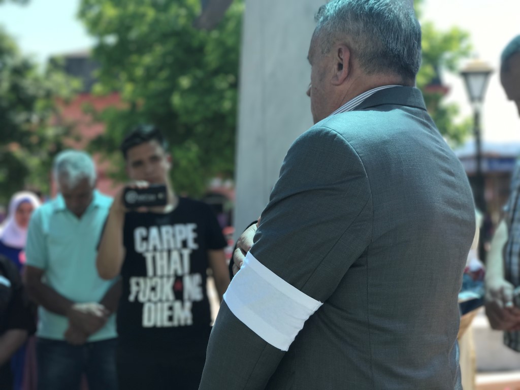 “Ova bijela traka krije bol neviđenu, ova bijela traka je bijela ali je crnja od crnog mraka, od četničkog mraka, koji su priređivali našim muslimanima i obavezivali ih da nose ove trake, da se predaju, da izravno idu u logore. Dakle, ovim su probrali nas kao nekakvu gamad koju treba istrijebiti a evo hvala Bogu mi našim sjećanjem hoćemo pokazati da ove bijele trake pokazuju koliki je bio četnički mrak u ta doba 1992. godine”