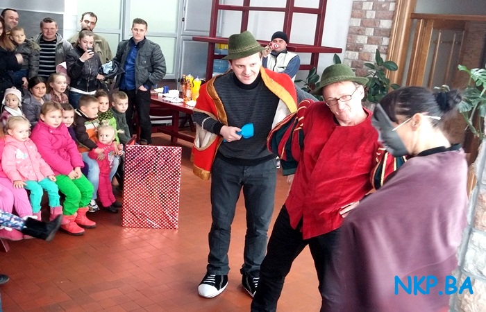Prije same podjele paketiće, dječaci i djevojčice su uživali u predstavi “Mačak u čizmama” u kojoj su učestovali glumci Narodnog pozorišta iz Tuzle. Pored mališana koji su sa osmijehom pratili predstavu, a kasnije i plesali sa glumcima, u predstavi su uživali i roditelji.