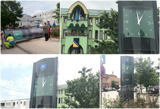 Danas (ponedjeljak, 22.05.2017.) ispred zgrade Općine Kalesija je instaliran veliki sat, koji će pokazivati i datum i trenutnu temperaturu.