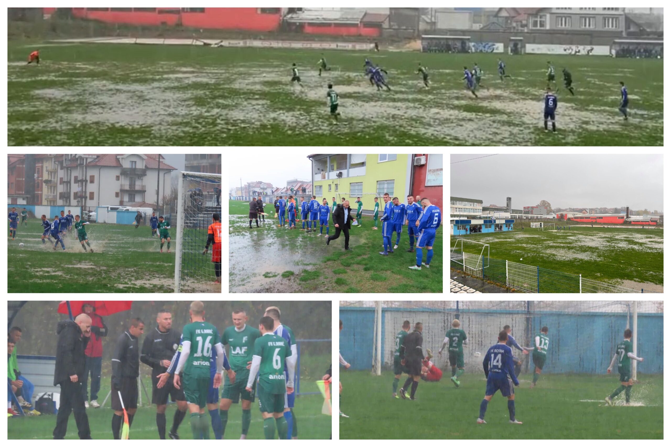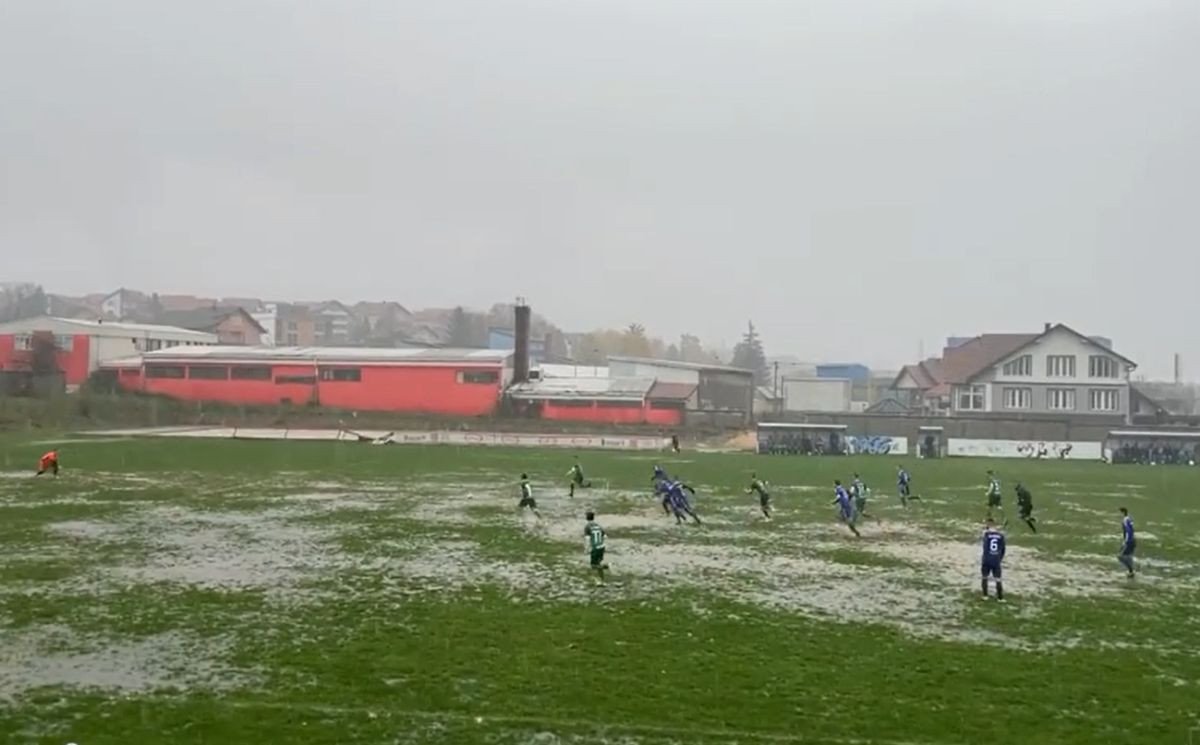 Teren u Kalesiji je u potpunosti natopljen vodom i mnogima je nevjerovatno da su glavni sudija Franjo Ćulap i delegat Zlatan Bećirević dali dozvolu da se odigra utakmica iako je jasno svima da uslova za to nema.