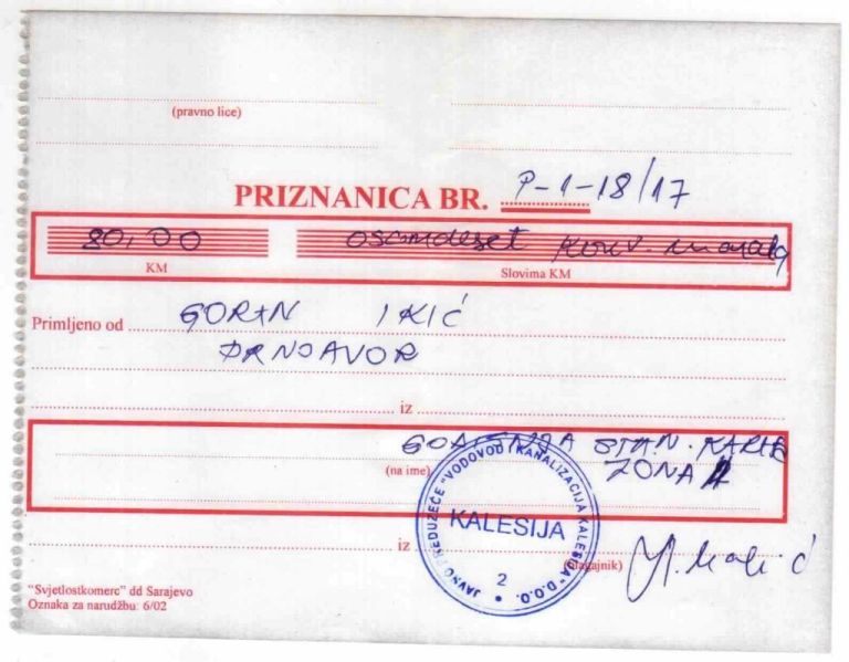 Cijena njegove parking karte sa brojem “001” iznosi 150 KM.