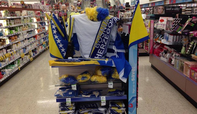 Tako, naprimjer, lokalni lanac nogometne opreme SoccerMaster u svojoj ponudi nudi i rekvizite bh. reprezentacije, no još je dalje otišla lokalna apoteka Walgreens koja nudi navijačku opremu uključujući bh. zastave, šalove, zastavice za auta, i kape.