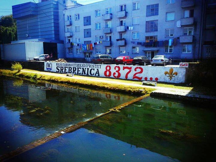 Članovi navijačke skupine BHFanaticos Sanski Most su ovih dana na nasipu uz obalu rijeke Zdene uradili grafit u znak sjćanja na genocid u Srebrenici.