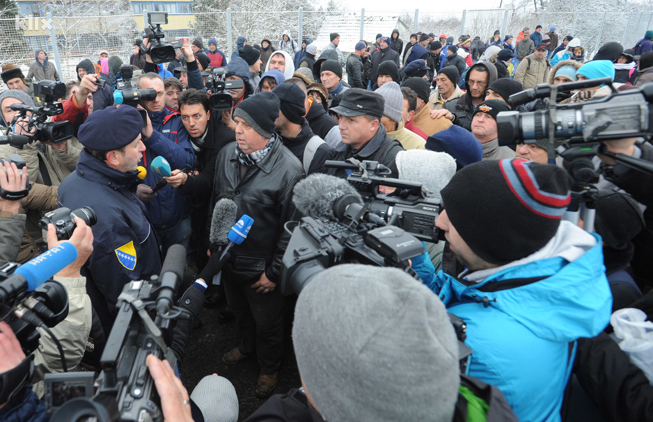 Po izuzetno hladnom vremenu kolona radnika Aide, Konjuha, Livnice čelika i Dite u 9.25 sati stigla je na granični prijelaz u Orašju u namjeri da napuste Bosnu i Hercegovinu.