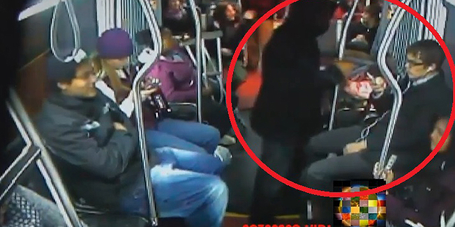 Trevonnte Brown (19) se vidi kako s kapuljačom na glavi i pištoljem u ruci ide od putnika do putnika i traži ih mobitele. Na snimci se vidi kako mu je jedna djevojka mobilni telefon predala, dok ostali putnici nonšalantno gledaju svoja posla, kao da se ništa ne događa.