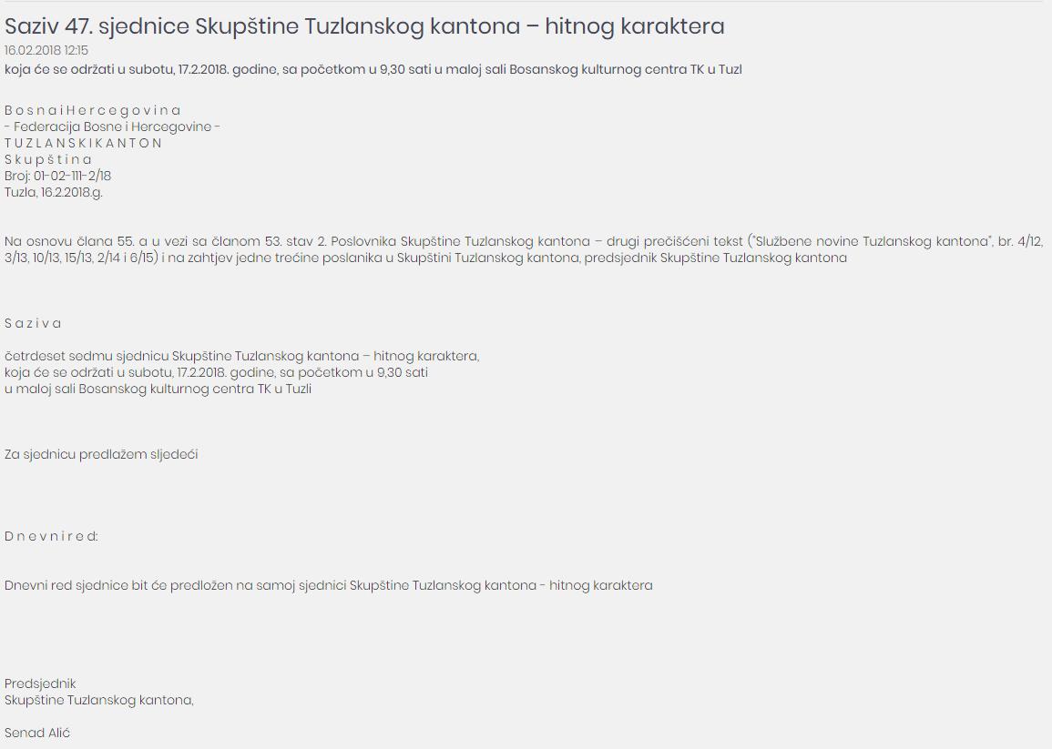 Inače, iz Skupštine TK već je upućen poziv za medijsko praćenje sjednice hitnog karaktera, bez preciziranje dnevnog reda. Kako je navedeno u sazivu, dnevni red će biti predložen za samoj sjednici.