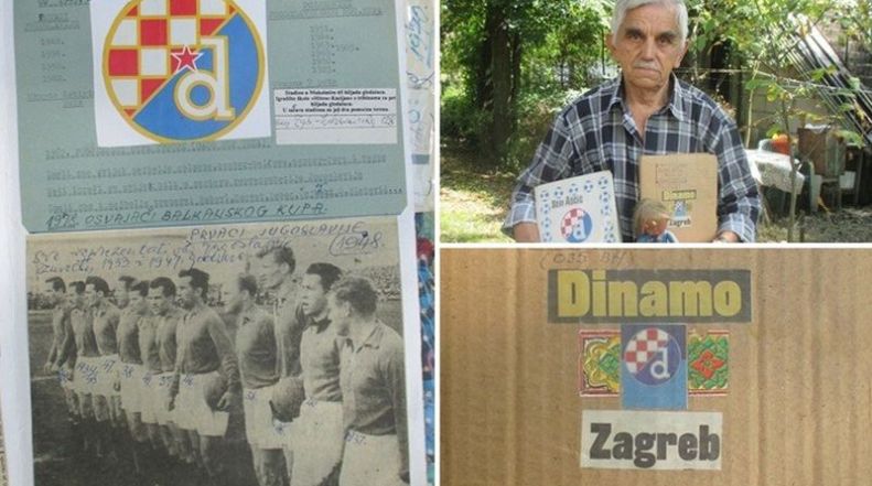 Skuplja fotografije i novinske članke o Dinamu. Sve ih je lijepo poslagao u fascikle umotane u debeli sivi karton. Tu su članci stari i 50-ak godina.