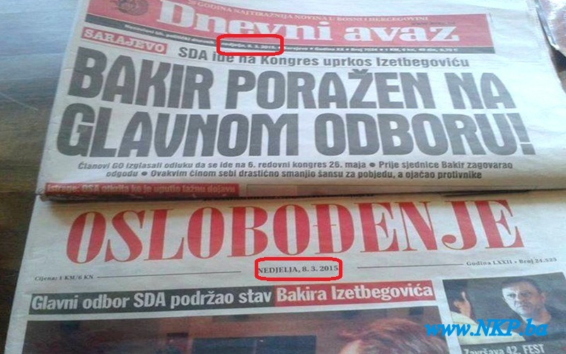 Pogledajte naslovnice dnevnih novina „Dnevni Avaz“ i „Oslobođenje“ od 8. marta 2015. (nedjelja).