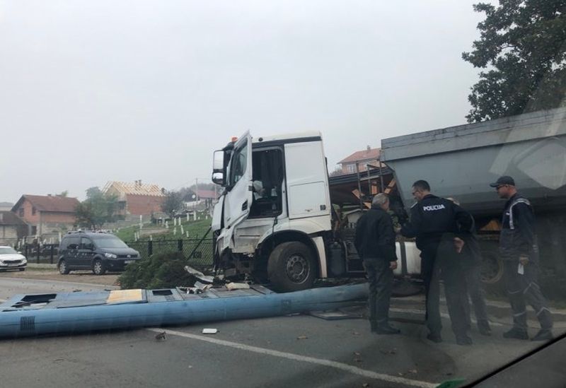 Jutros se u Kalesiji dogodila saobraćajna nesreća u kojoj je kamion sletio s kolovoza i srušio totem benzinske pumpe “Ina” na kojem su istaknute cijene goriva.
