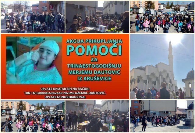 U petak (17.03.2017.) u organizaciji Asocijacije žena Medžlisa IZ Kalesija, Medžlisa IZ Kalesija, kao i džemata Čaršijska džamija, uspješno je sprovedena akcija prikupljanja pomoći za Merjemu Dautović.