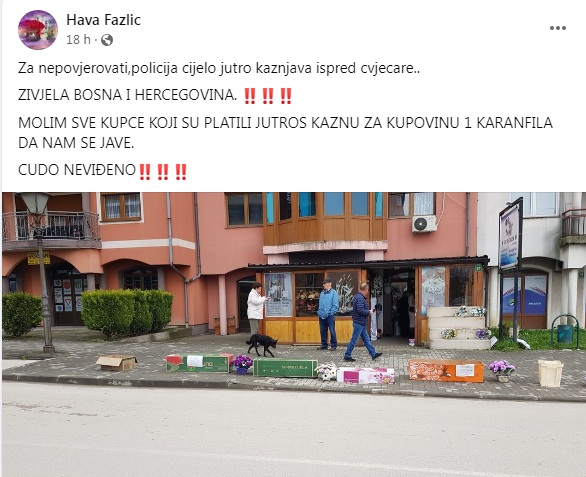 - HAVA FAZLIĆ, vlasnica jedine cvjećare u Kalesiji, SEIF doo kao porodičnog biznisa – jučer je objavila kako policija kažnjava sve njene kupce koji se privremeno zaustave ispred objekta SEIF-a u centru Kalesije u Ul.Žrtava genocida u Srebrenici.