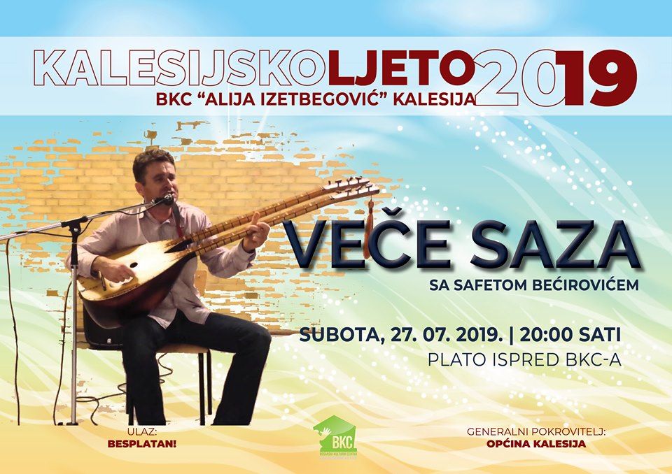 U okviru kulturno-zabavne manifestacije „Kalesijsko ljeto 2019“, u subotu, 27. jula, na rasporedu je Veče sevdaha uz saz i Safeta Bećirovića.