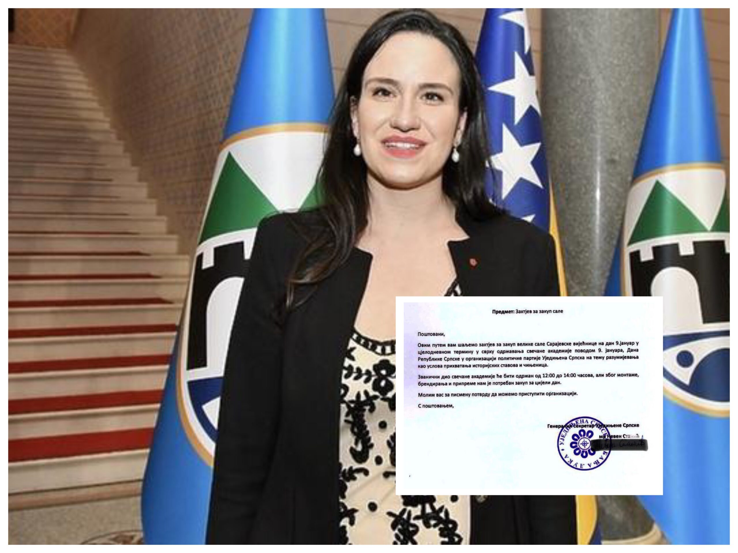 Stranka “Ujedinjena Srpska” čiji je predsjednik Nenad Stevandić podnijela je, u najmanju ruku, provokativan zahtjev za zakup sale s ciljem održavanja svečane akademije povodom neustavnog Dana RS-a u sarajevskoj Vijećnici. Zahtjev je odbila gradonačelnica Benjamina Karić.